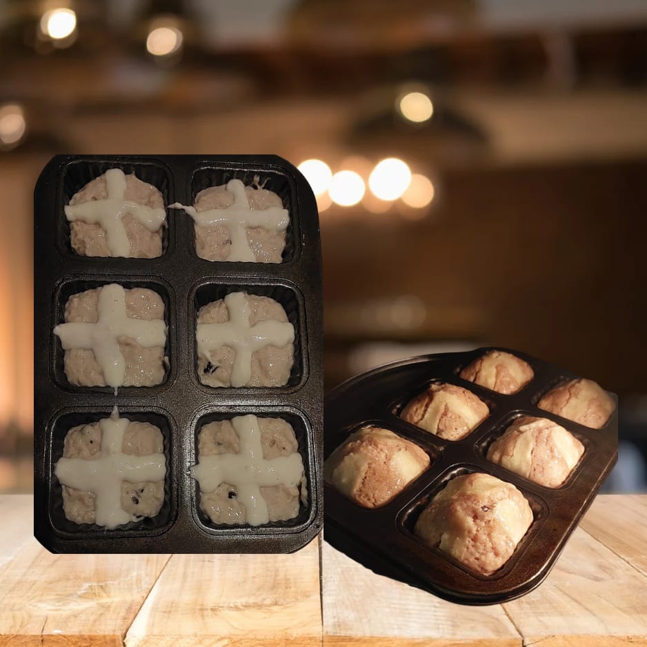 Make your own delicious Hot Cross Buns this Easter! (Instructions on our Facebook pagehttps://www.facebook.com/share/p/1E76DbQwdV/ .) It is less spicy than the hot cross buns you can buy at the shops.Ā My children love it!Ā See instructions how to make the cross and how to glaze it.Ā Ā Make memories in the kitchen.Ā Let the children help to make the crosses on the dough.Ā Easy and perfect for the whole family to enjoy!