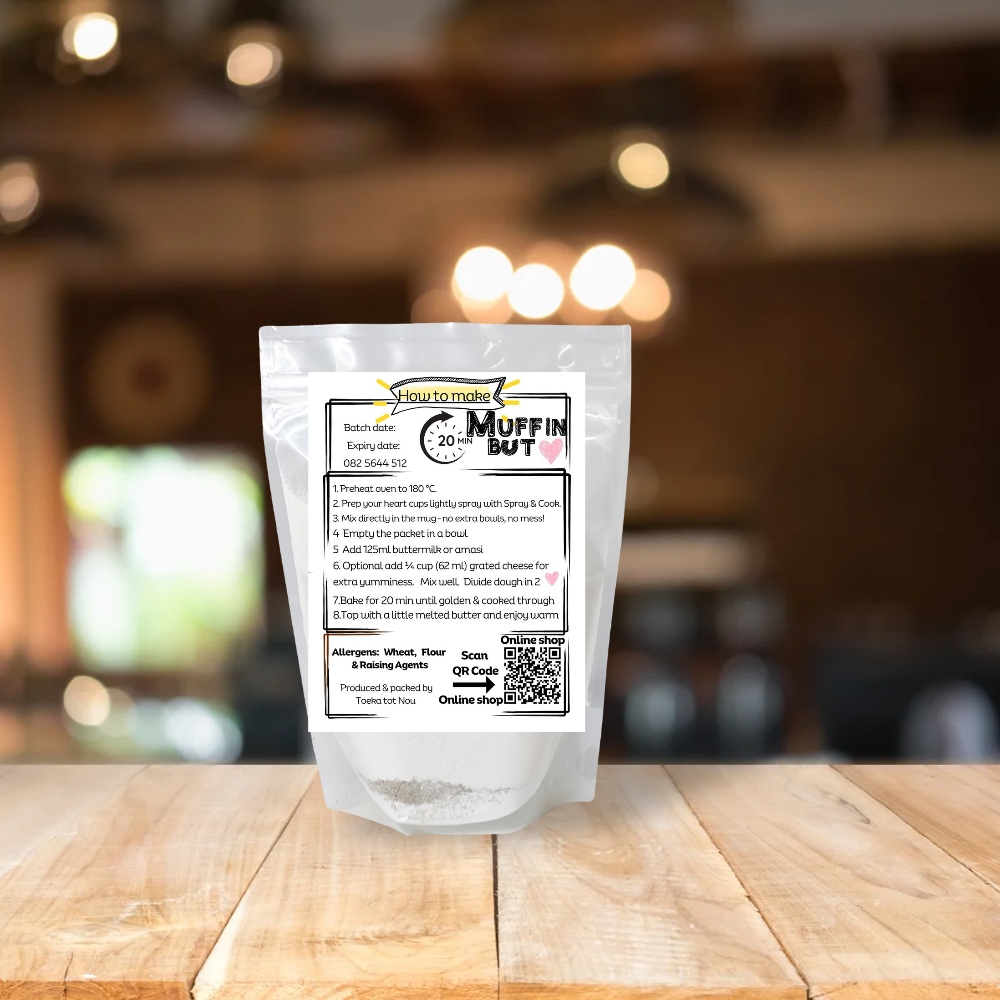 Jusst add buttermilk or amasi mix everything together and divide it between the 2 heart shape paper containers. Bake for 20 minutes in the over on 180 degrees Celcius.